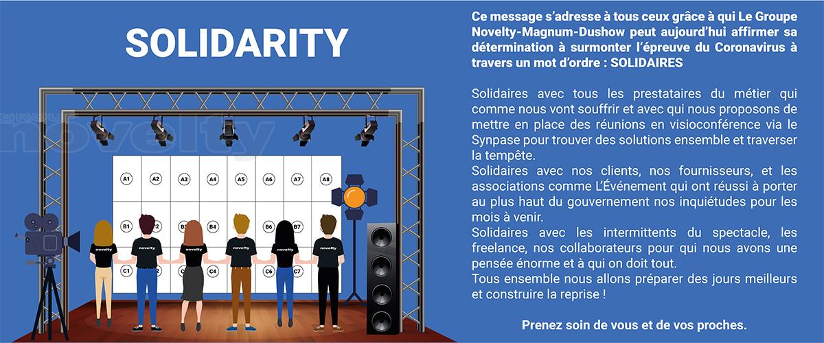This message is for all those thanks to whom The Group Novelty-Magnum-Dushow can today affirm its determination to overcome the trial of the Coronavirus through a watchword: SOLIDARITY.