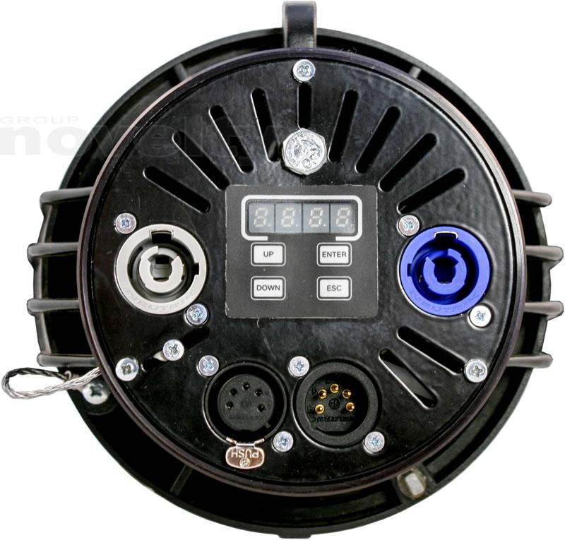 The HPLed is powered by an high power Light Emitting Diode Array with a standard colour temperature of 4000°K. HPLed incorporates a display board to operate the fixture via RDM and or DMX Protocols. The rear section of the RDM/DMX HPLed embeds functions to facilitate fixture operations, such as convenient IN/OUT 5-pin XLR and PowerCon connectors.