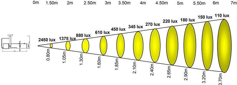 - Veillez au réglage du train de lentilles (netteté de la tâche de lumière), en fonction de la distance et de la surface à éclairer