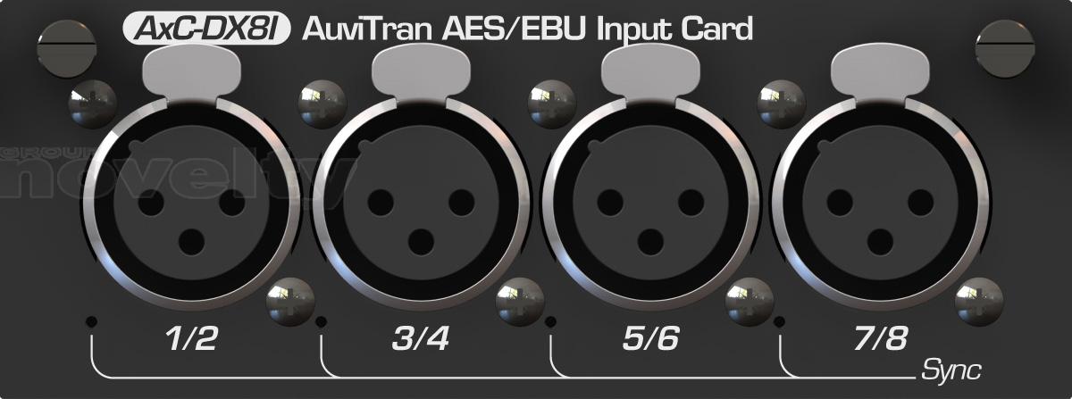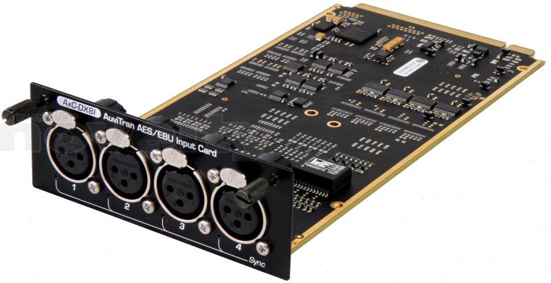 La carte AxC-DX8I apporte des entrées AES/EBU à la gamme Audio ToolBox d’AuviTran .AxC-DX8I intègre 4 entrées stéréo numériques AES/EBU sur connecteurs XLR. Chaque entrée peut être utilisée indépendamment, tout en bénéficiant des avantages d’un changement de fréquence haute qualité embarqué « ASRC » (Asynchronous Sample Rate Converter) – la solution idéale pour résoudre les problèmes de synchronisation et d’entrées à fréquences d’échantillonnage multiples.