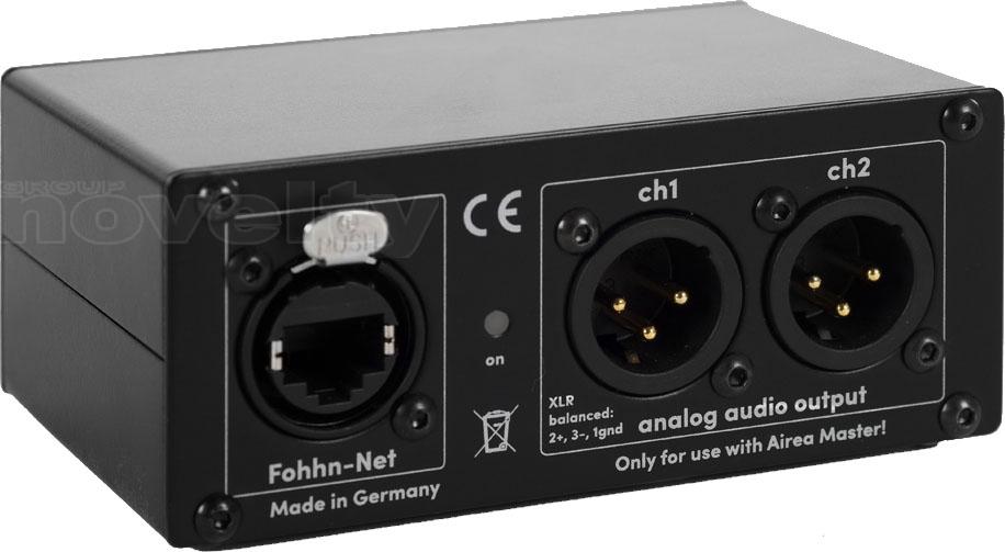 - Fohhn AM-50Amplificateur "AIREA-Master", interface centrale / alimentation, 8 x AES/EBU, Entrées Fohhn-Net, 8 sorties réseau AIREA permettant d’alimenter jusqu’à 32 enceintes actives.