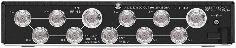 Splitter d'antenne actif 4:1, permet d'alimenter en signal jusqu'à quatre récepteur diversity à partir de seulement deux antennes