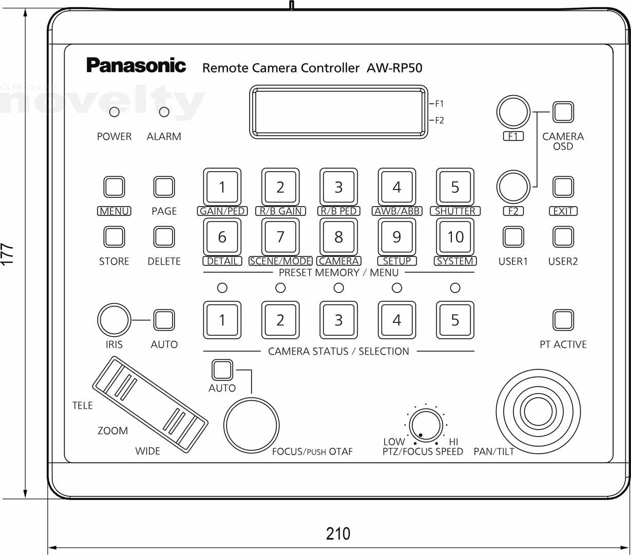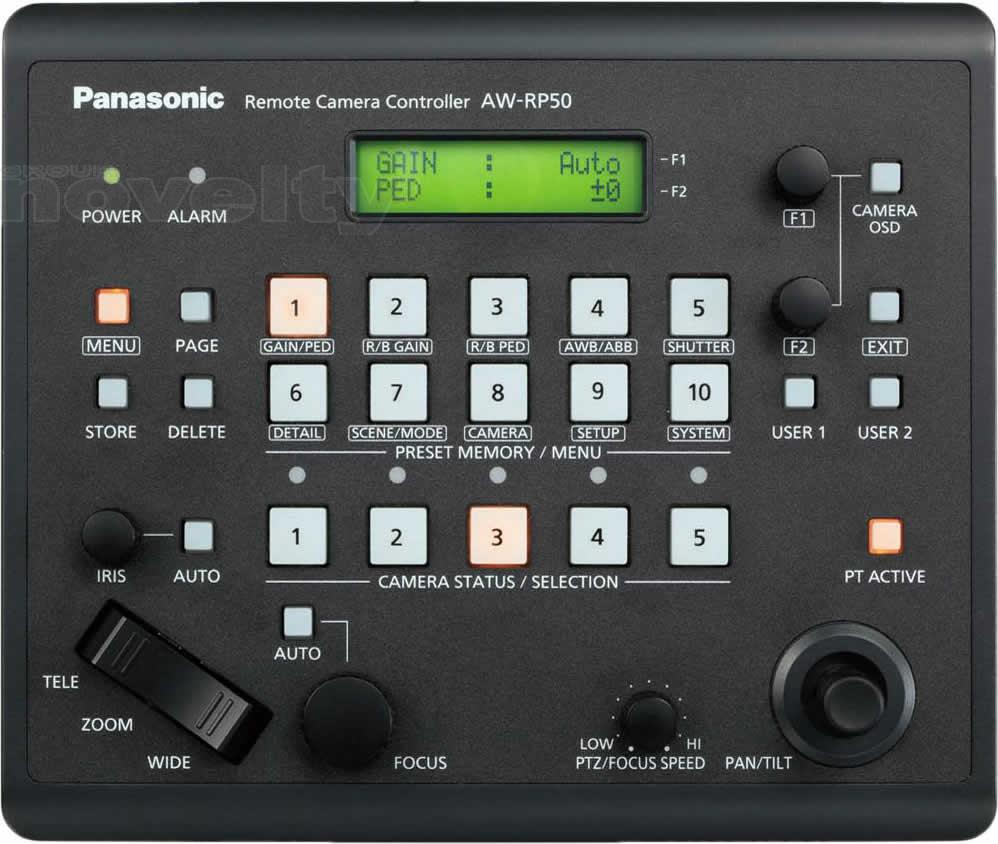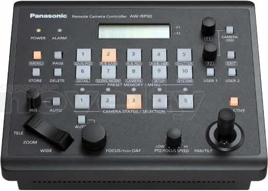 Cette unité de contrôle de la caméra à distance peut contrôler jusqu'à une centaine de caméras de la série AW-HE50 de via IP, et jusqu'à cinq caméras Panasonic et pan-tilt têtes à l'aide de contrôle RS-422 série. Le RP50 est capable d'accéder à jusqu'à 100 présélections pour chaque caméra PTZ Panasonic intégré (AW-HE50 et AW-HE100), et jusqu'à 50 préréglages pour les autres têtes panoramiques de la série AW Panasonic.