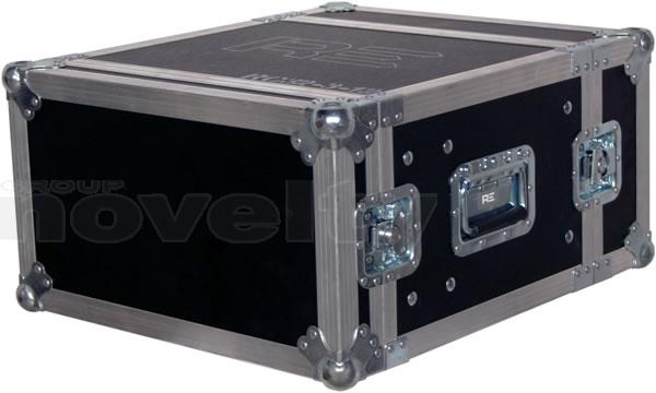 Armoire de distribution en flight-case. Entrée : P17 32A tri. Sorties : 3 x P17 32A mono + 6 x PC16A. Protection différentielle 30mA