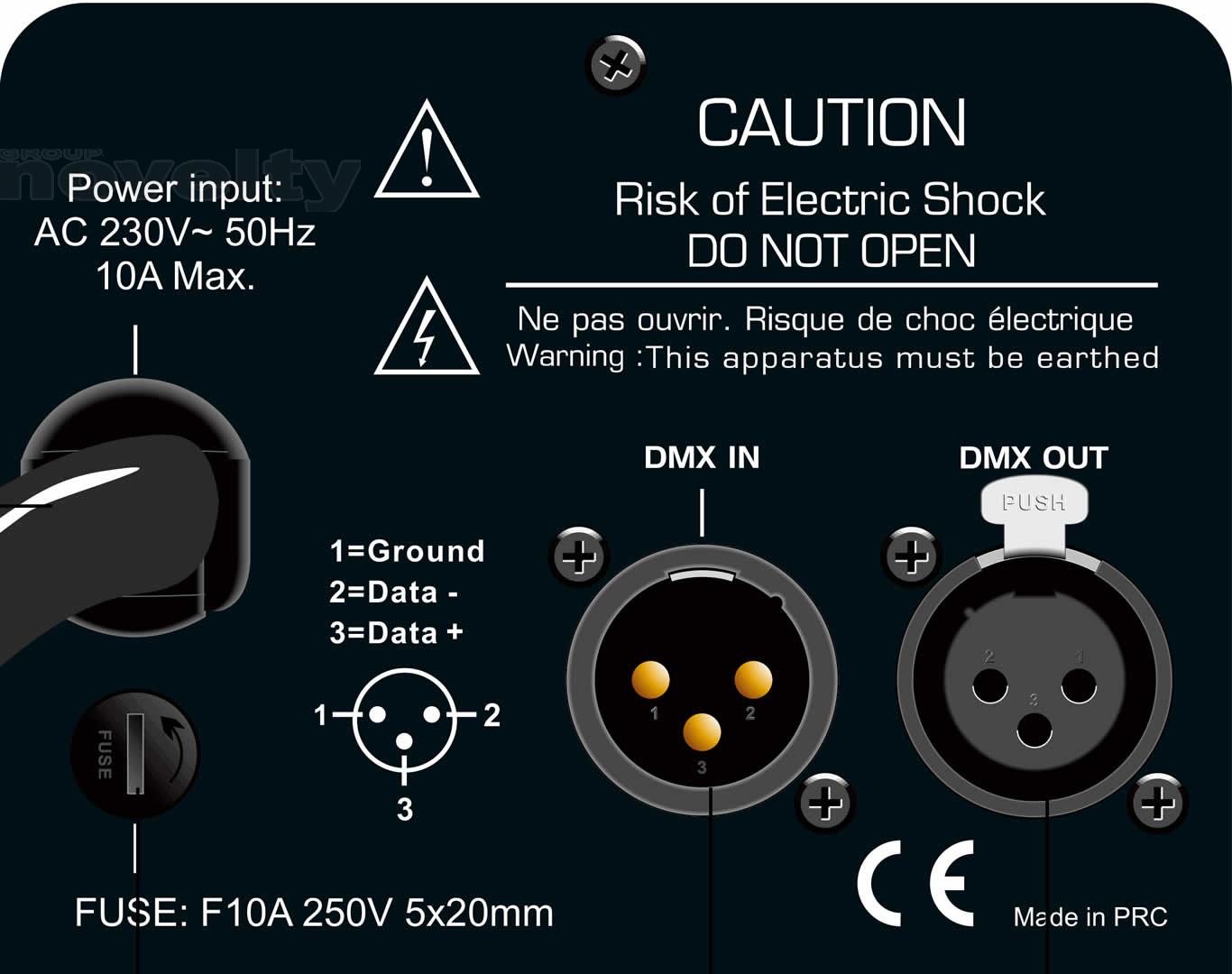 - Entrée et Sortie DMX sur embases XLR 3 broches