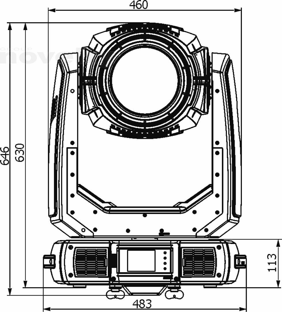 - Iris: Motorized, stepless, pulse effects up to 3 Hz