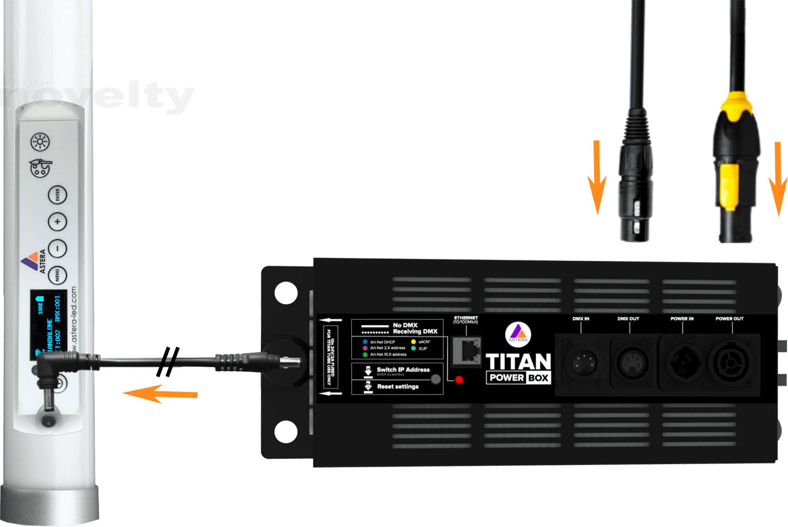 De plus, le Titan Tube accepte désormais les branchements DMX câblé via le PowerBox et un câble spécial combinant alimentation et données.