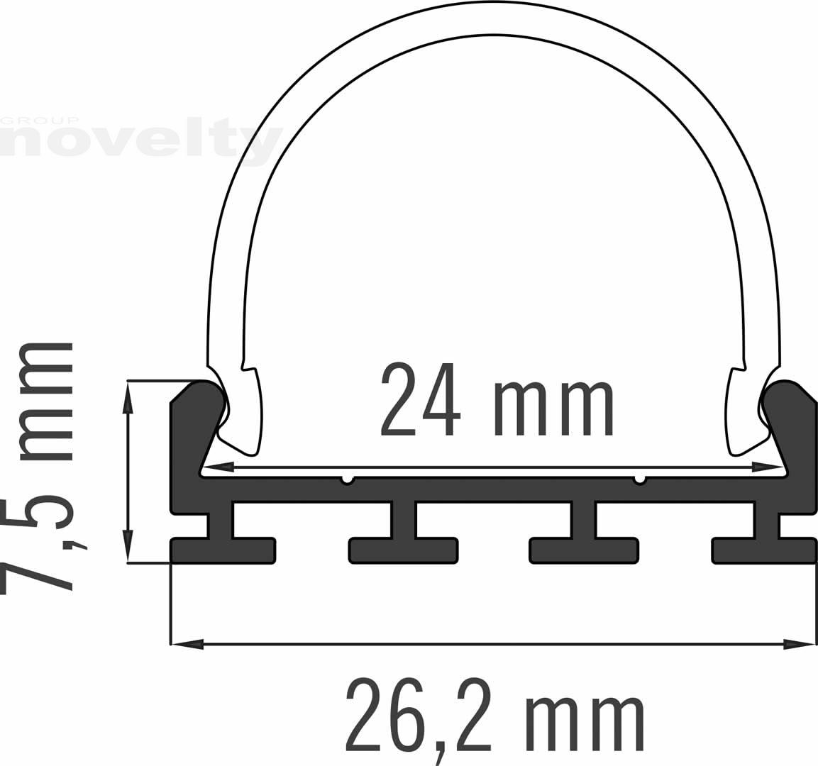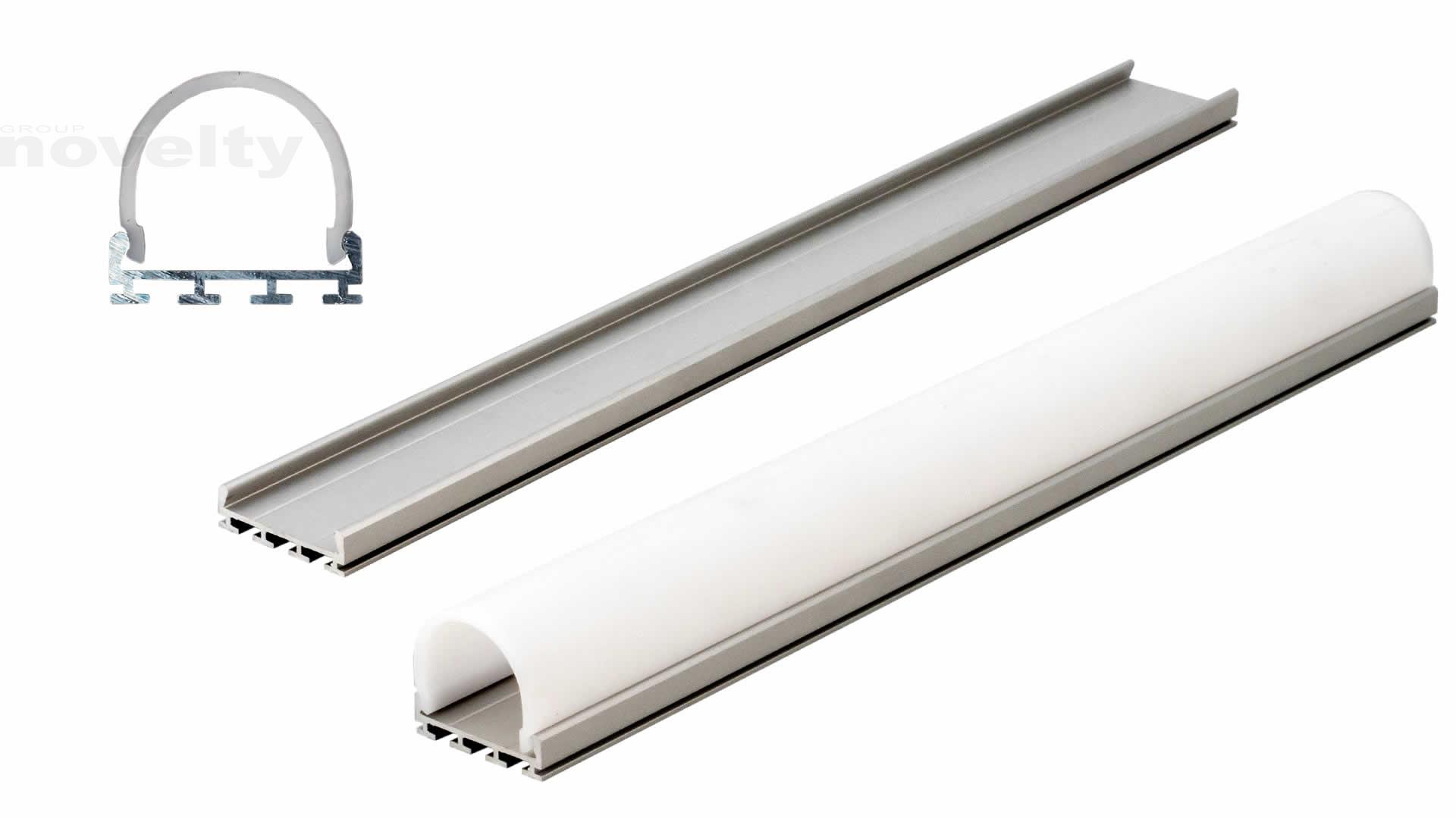 Profilé alu pour ruban LED en longueur de 2m, avec couvercle diffusant bombé larg. 24mm