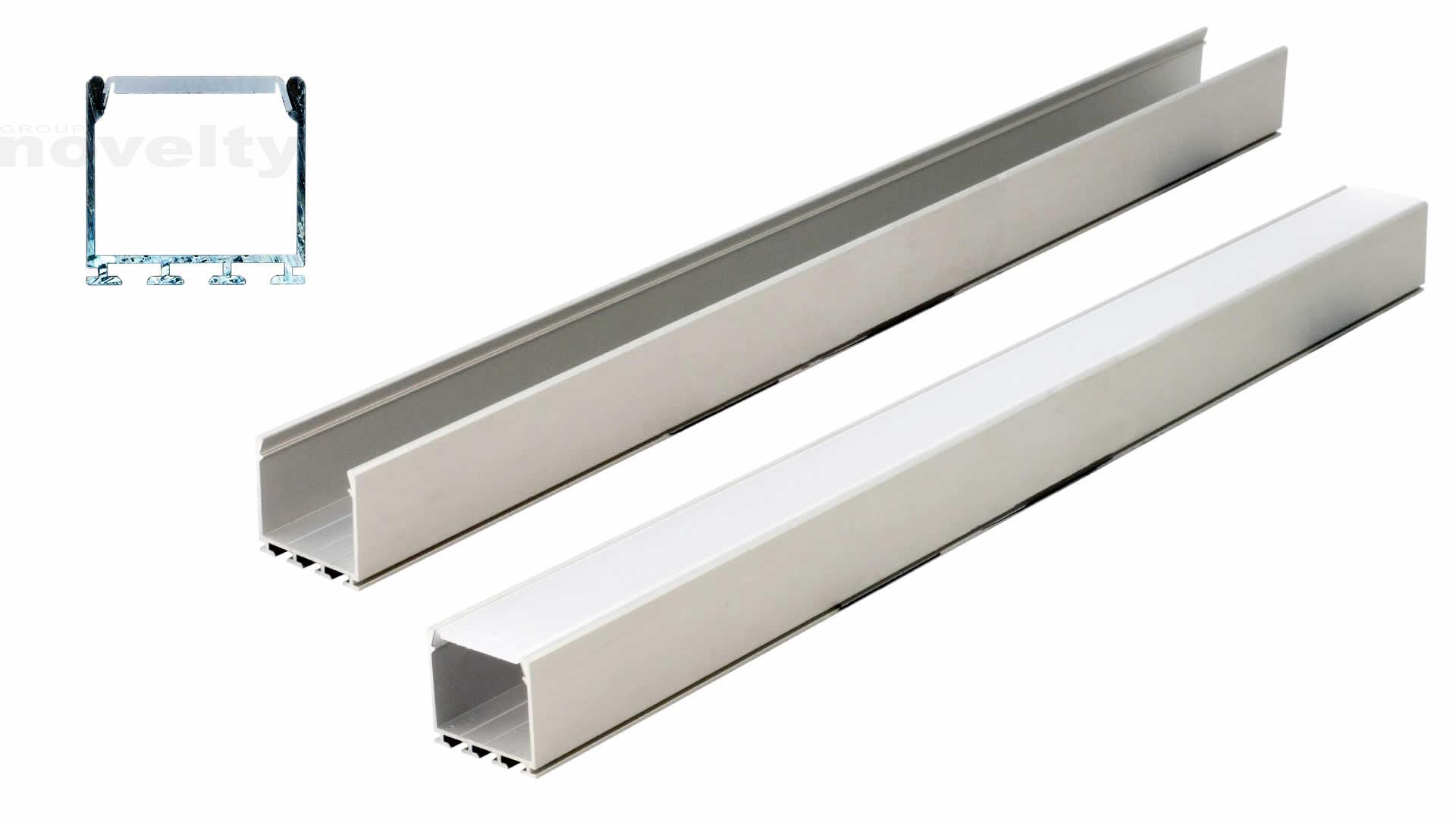 Profilé alu pour ruban LED en longueur de 2m, avec couvercle diffusant plat larg. 21mm