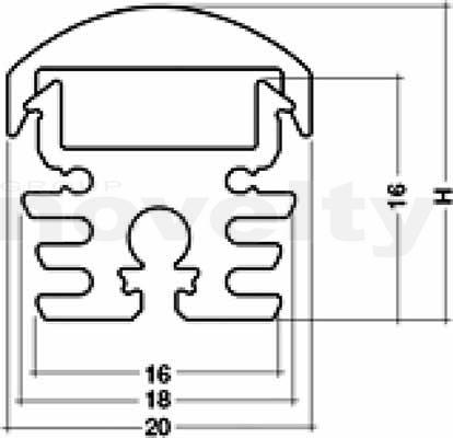 Profilé alu pour ruban LED en longueur de 2m, avec couvercle lentille Frost (30°, 60° ou 90°) bombé larg. 20mm