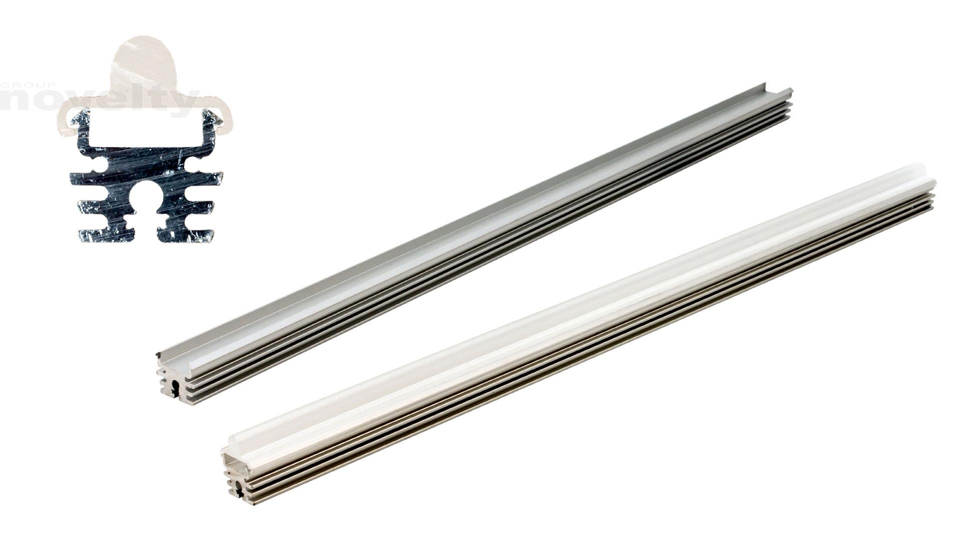 Profilé alu pour ruban LED en longueur de 2m, avec couvercle lentille Frost 15° bombé larg. 20mm