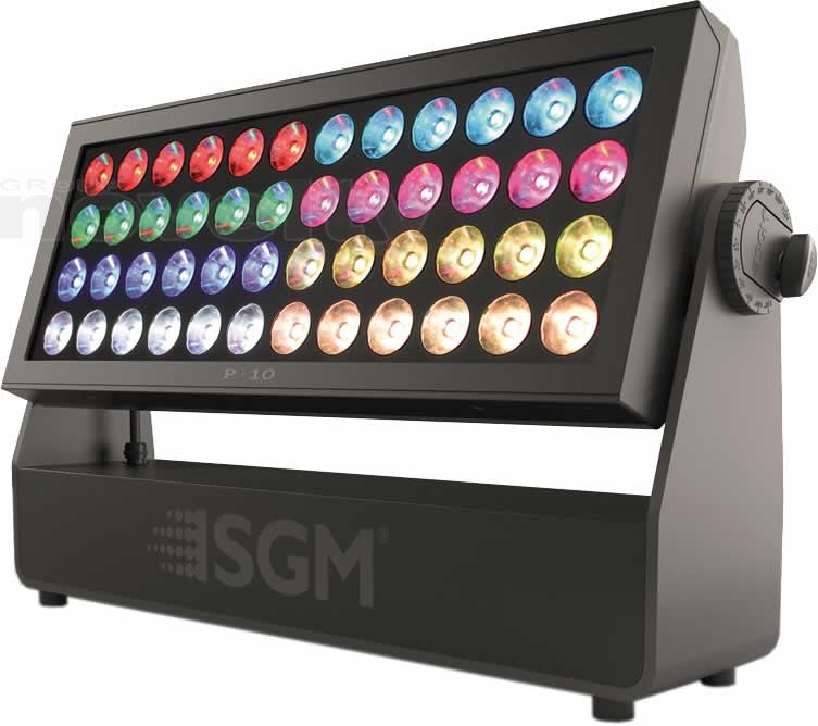 The SGM P-10 delivers best-in-class optical color mixing. It maintains the same accurate factory color calibration of the P series and the avoidance of color shifts. The P-10 delivers superb color rendering, and like all SGM wash lights, it is designed to achieve, not only deep reds and warm pastels, but also blue saturates, bright magentas, and soft turquoises.
