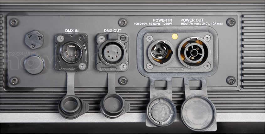 - DMX data in/out : IP65 XLR 5-pin connector, Female, IP65 XLR 5-pin connector, Male