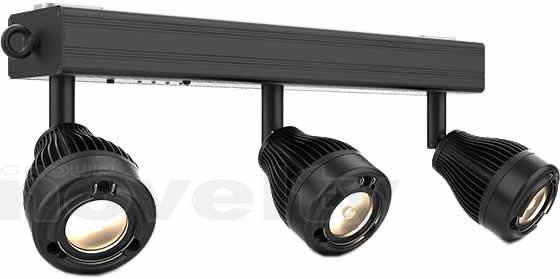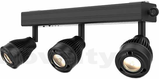 Rampe de 3 spot LED 5W, sur batterie, 4000° K, autonomie 9h (full) | 11h30 (Mid-Hi) | 15h30 (Mid-Low) | 48h (Low), recharge en 7h30