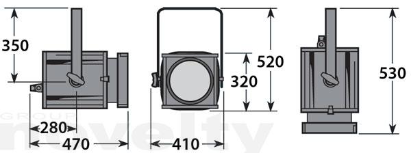 Projecteur lentille "Plan Convexe", 2000w / 220V, Ø lentille = 200mm. Cassette avant double glissière pour accessoires 245 x 245 mm.