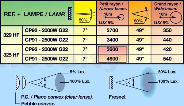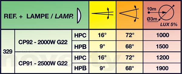 - Leds ou Lampe : CP92 (2000W - G22) ou CP91 (2500W G22)