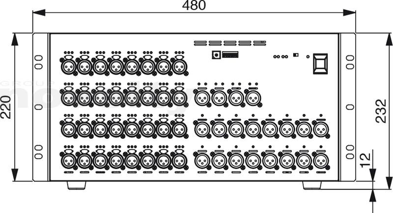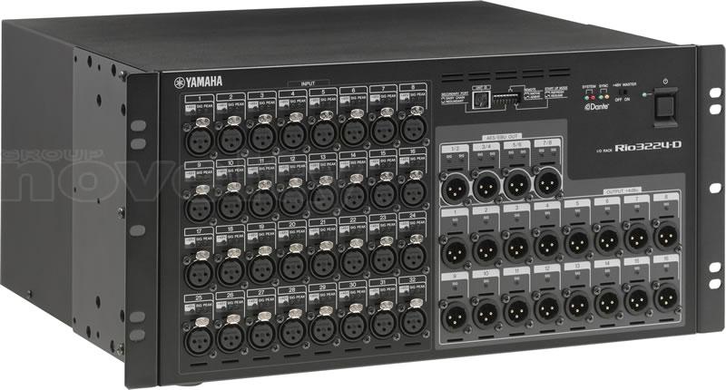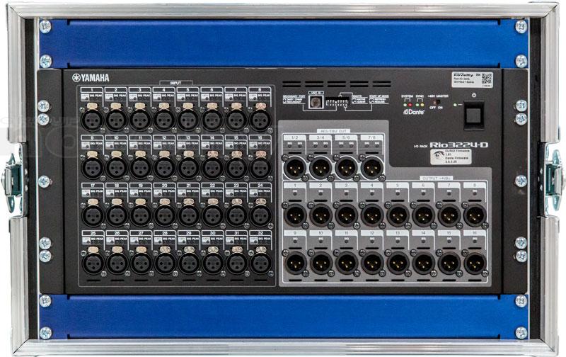 The Yamaha Rio3224-D is a Dante-compatible I/O rack, featuring 32 analog inputs, 16 analog outputs, and 4 Stereo AES/EBU outputs.