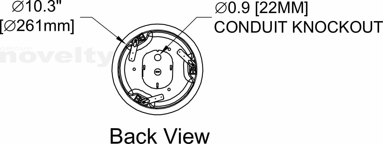 - Suspension / Mounting : Three integrated quick-install mounting arms. Three mounting points at the rear of the enclosure for use with optional accessory pendant mount kit. Safety cable attachment: .35" (8.9 mm) diameter hole on junction box