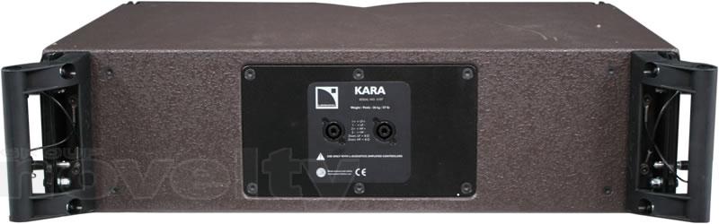 - KARA est une enceinte active 2 voies comprenant deux haut-parleurs néodyme LF de 8” montés dans une enceinte bass-reflex. La section HF est composée d’un moteur néodyme à chambre de compression de diaphragme 3”chargé par un guide d’onde DOSC®.