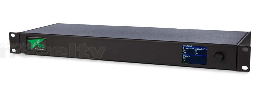 The Green-GO InterfaceX links 2-wire or 4-wire analog intercom systems into the Green-GO digital Ethernet network. This audio in/out interface with contact closures connects to an existing matrix or other analog interfacing products. A 4-wire intercom can be connected to the dual in/out 3-pin XLR ports. This allows two separate audio signals (or a stereo signal) to be injected into the Green-GO network and transmitted to any other location on the same Ethernet network. Next to the 4-wire connections, there is a separate 3-pin XLR port dedicated to connecting a basic analog 2-wire intercom (partyline system). All of the ports can be configured individually through the setup menu of the Green-GO InterfaceX. There are also two GPIO connectors provided on the back of the device.