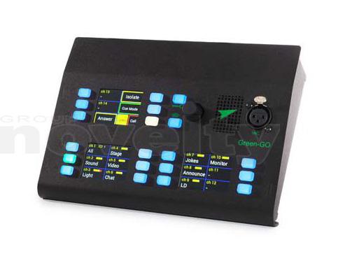 he Green-GO Multi-Channel Desk Station provides direct access to 32 separate users or groups through individual multicolour push-buttons. Each button can be assigned to a single user or a group. Three colour TFT touchscreens indicate the name, volume level and status of the channels. The push-buttons next to the touchscreens are used to control the operational features for each channel (‘Talk’, ‘Listen’, ‘Call’ or ‘Cue’ – depending on which function is selected).The Multi-Channel Desk Station has an internal loudspeaker. A 3-pin XLR microphone connector on the front panel allows you to connect a stalk microphone (not supplied). On the back panel are two Ethernet LAN ports with an internal 100MB switch. There is also a GPIO connection located on the back of the device (2x in, 2x out).