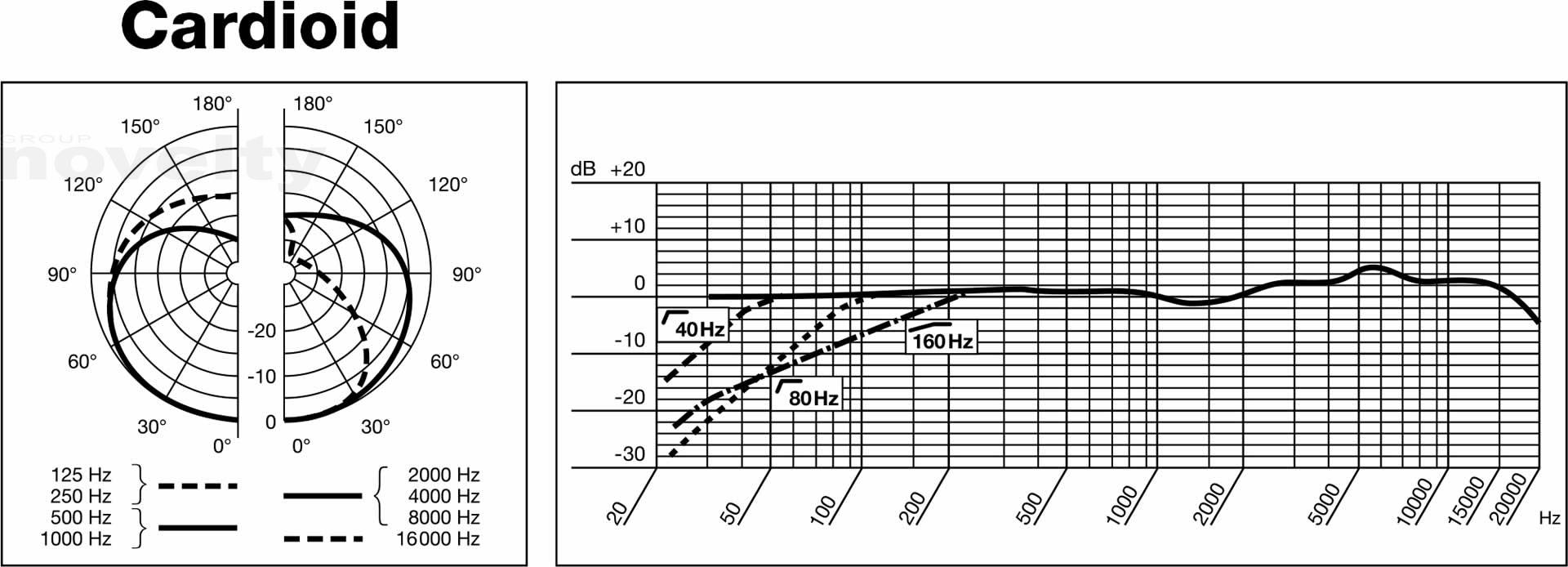 - Polar patterns : Omnidirectional, wide cardioid, cardioid, hypercardioid, figure eight?Sensitivity : 23 mV/Pa (-33 dBV) ± 0.5 dB?Frequency range : 20 to 20,000 Hz (see frequency response traces)?Electrical impedance : ≤ 200 ohms