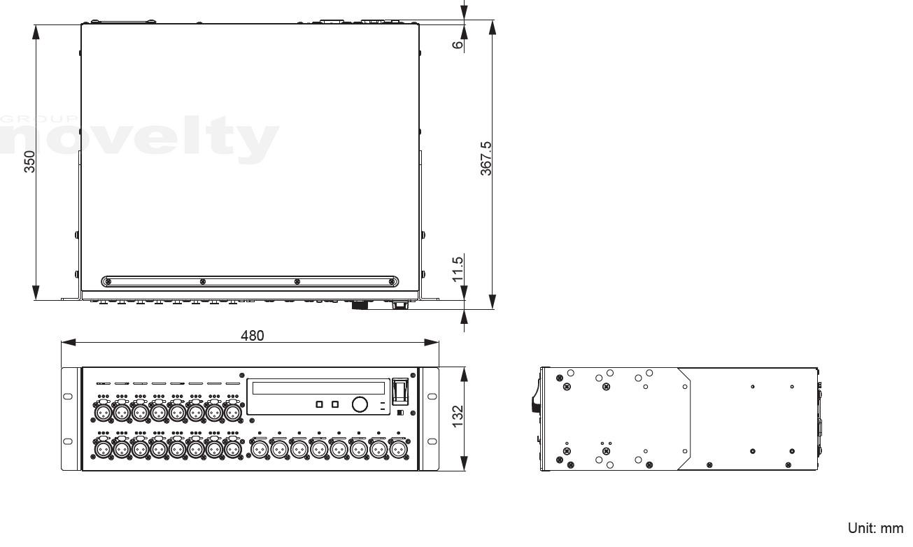 Dimensions: 3U, 480 x 144 x 368mm (L x H x P).