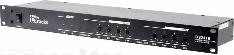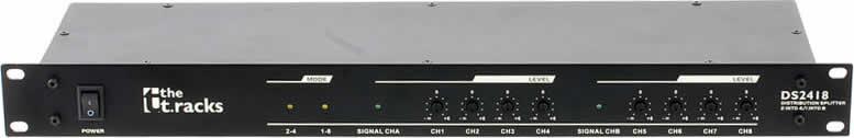 Boitier de distribution audio ("valise de presse" / splitter), 2 entrées vers 4 sorties ou 1 entrée vers 8 sorties