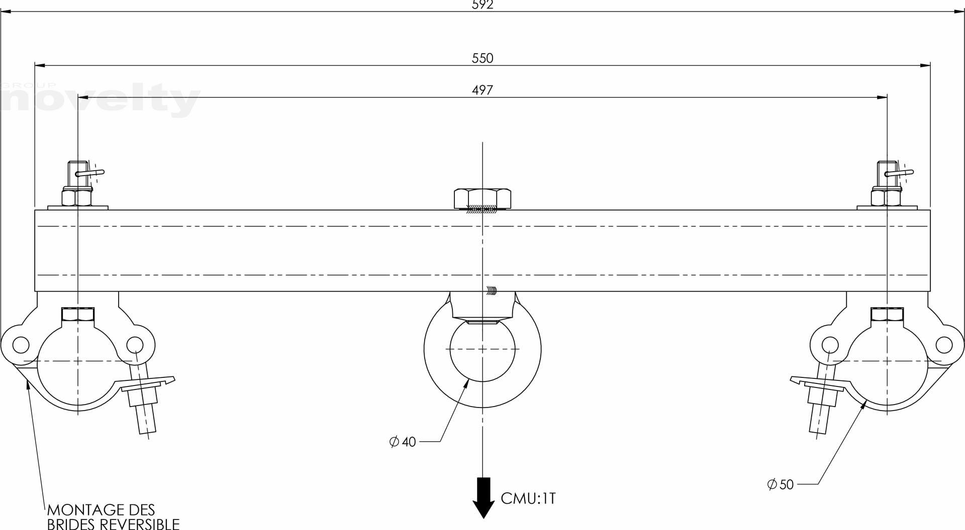 Suspente d'accroche moteur pour truss entraxe 52cm, charge 1t, couleur noire