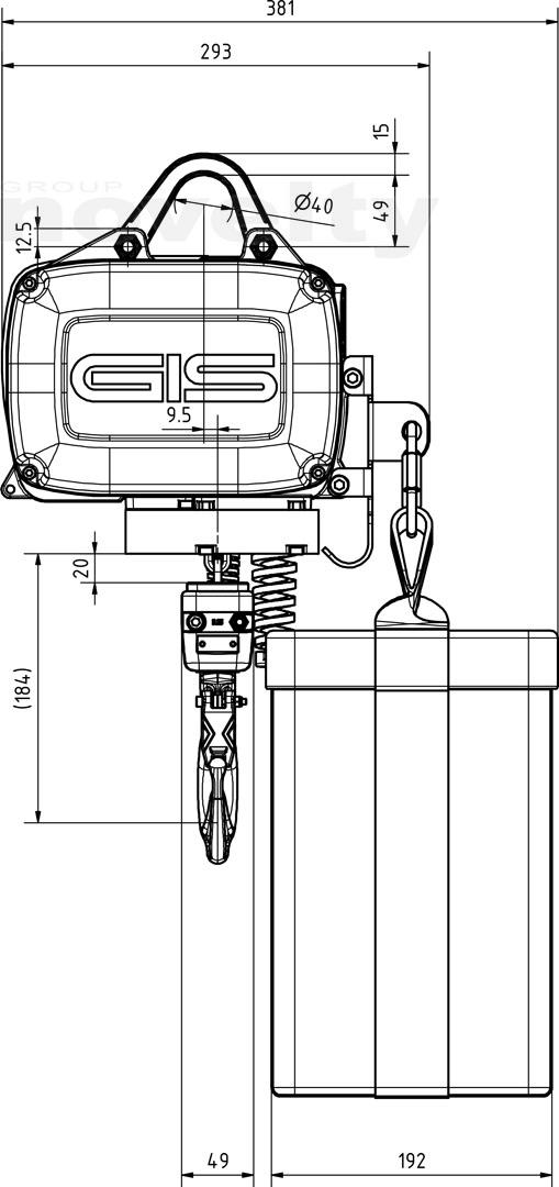 Palan électrique charge 500kg, chaîne 20m, vitesse 4m/mn, double frein (D8+)