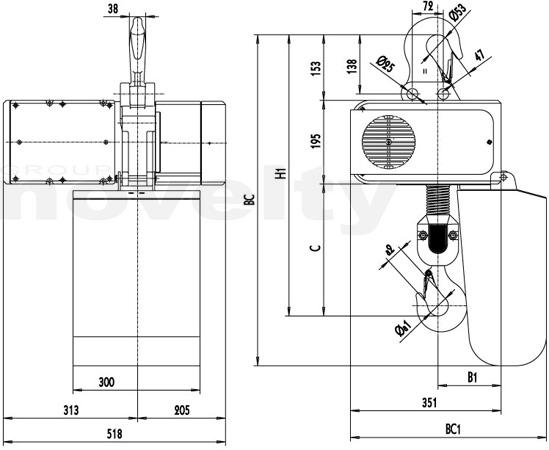 Palan électrique SM16 1600kg, 20m, 8m/mn