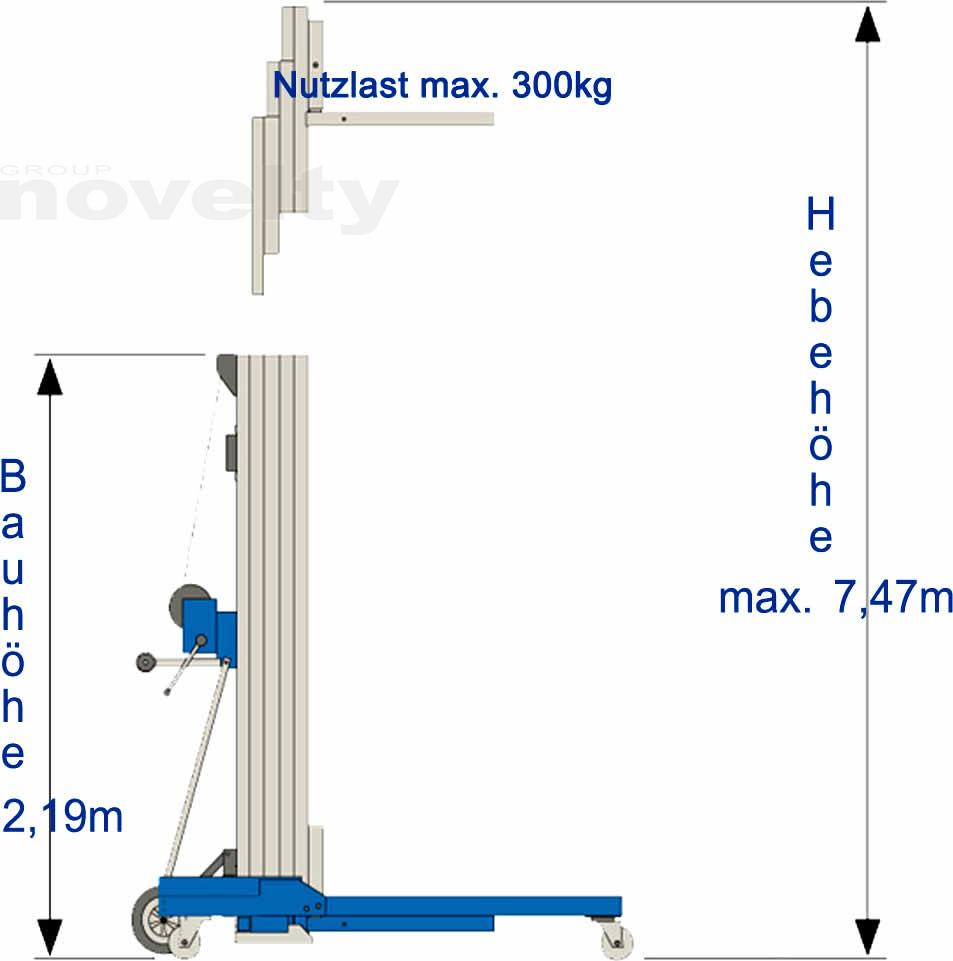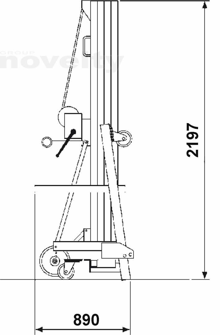 Pied de levage à treuil, hauteur maxi 7,5m, charge maxi 300kg