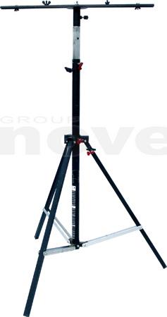 Pied acier, hauteur 1,29m à 2,50m, charge maxi 70kg. Livré avec tourelle