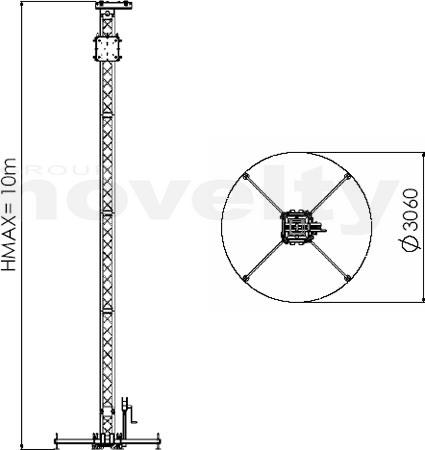 Tour de levage noire, 10m / 1t, mât série 300 carré. Pour grill structure carré ou triangulaire en 300 et 400.