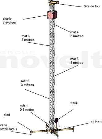 - Un lest de 250 daN devra être installé en bout des 2 pieds d'embase en opposition à la charge afin d'équilibrer la tour