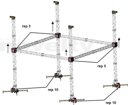 - La TL 290 est une tour de levage avec chariot pour le levage d’un pont de scène ou d’une structure de scène complète à partir du sol.