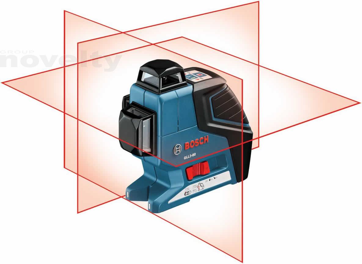 The Bosch GLL3-80 360° Three-Plane Leveling and Alignment-Line Laser generates three 360° laser planes – one horizontal and two vertical – for level, plumb and square applications. Designed for finish carpenters, remodelers, electricians and others who need to be able to line up a room from one point, the laser increases productivity because its two vertical lines cross at 90° angles to quickly square the layout of a room. It is a total level and alignment solution without any rotating motors. It projects in three axis planes simultaneously and can be switched between triple axis plane, vertical-only and horizontal-only modes. It comes with a BM1 Positioning Device for versatile and quick set up.