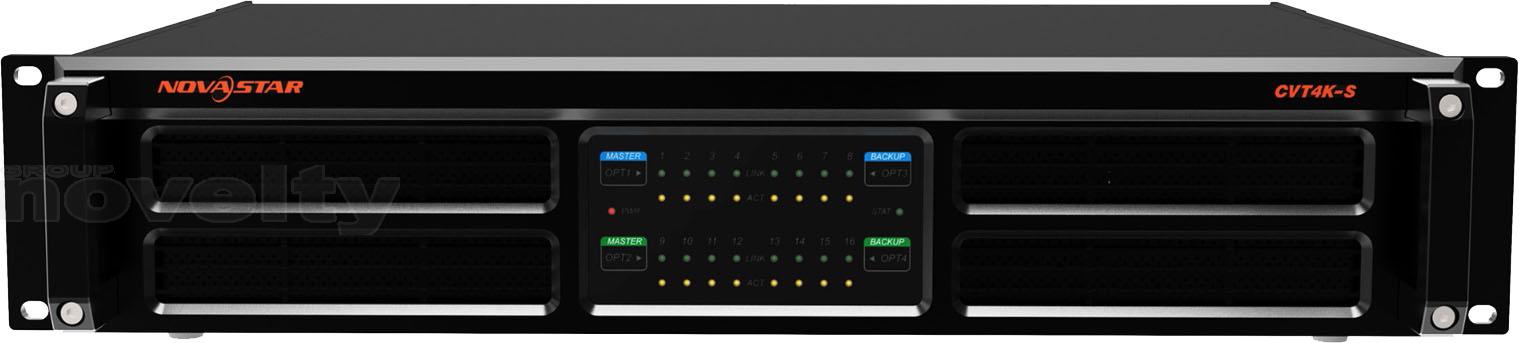 Le CVT4K-S est un convertisseur de fibres haute performance qui peut être utilisé avec le contrôleur MCTRL4K (101652). Le CVT4K-S gère la transmission de signaux de 16 liaisons Ethernet par câble à fibre optique et permet la transmission de signaux longue distance jusqu’à 10 km qui demeurent stables et sont difficiles à brouiller. Les modules SFP requis dotés de l’interface LC sont inclus. Chaque sortie possède un indicateur sur le tableau avant qui vous permet de vérifier instantanément si toutes les sorties transmettent des données. Le CVT4K-S dispose non seulement d’une alimentation interne redondante, mais aussi de ports optiques redondants assurant une fiabilité maximale lors de chaque spectacle ou événement.- 16 ports Ethernet de sortie