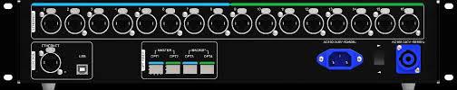 - Interface de sortie : 4 ports optiques, OPT1 (1 à 8) ; OPT2 (9 à 16) ; OPT3/4 en renfort de OPT1/2