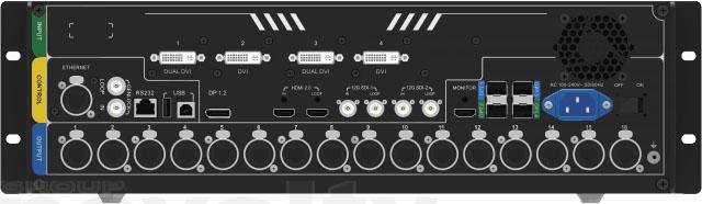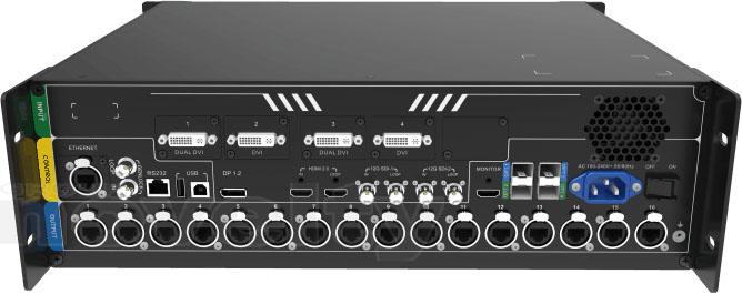 - 16 × Neutrik Gigabit Ethernet output connectors, allowing for a loading capacity of up to 10,400,000 pixels