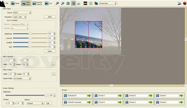 - Panneau: Intensité, Réglage RGB, Position image vidéo