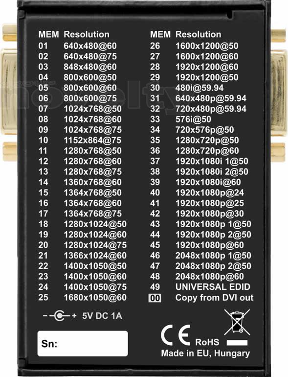 - Programmable EDID memory: 29 EDID