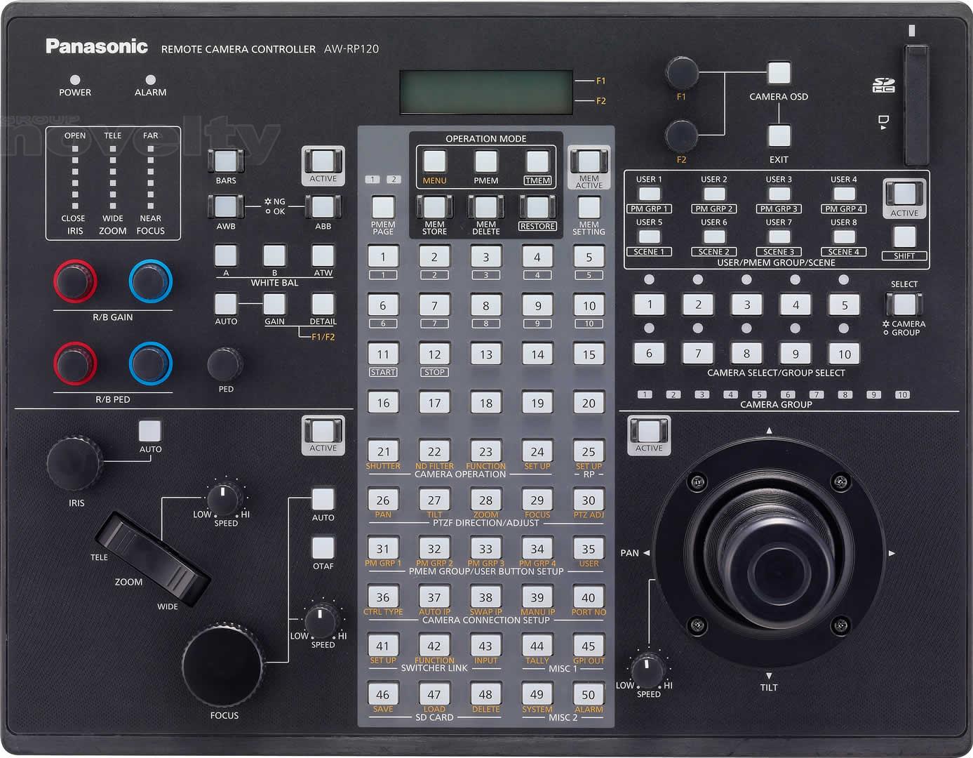 The cost-effective RP120 offers advanced functions including Group Presets for rapid, easy scene changes, Tracing Memories for storage and recall of complex operations, SD Memory Card memory storage, and direct panel control of gain, pedestal, and detail settings. With an easy-to-use control layout and the most powerful feature set of any Panasonic controller, the RP120 addresses a diverse range of applications in broadcasting, sports, Houses of Worship, education, rental/staging, corporate and government.